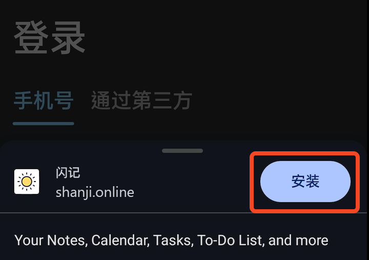 打开闪记登录页面后