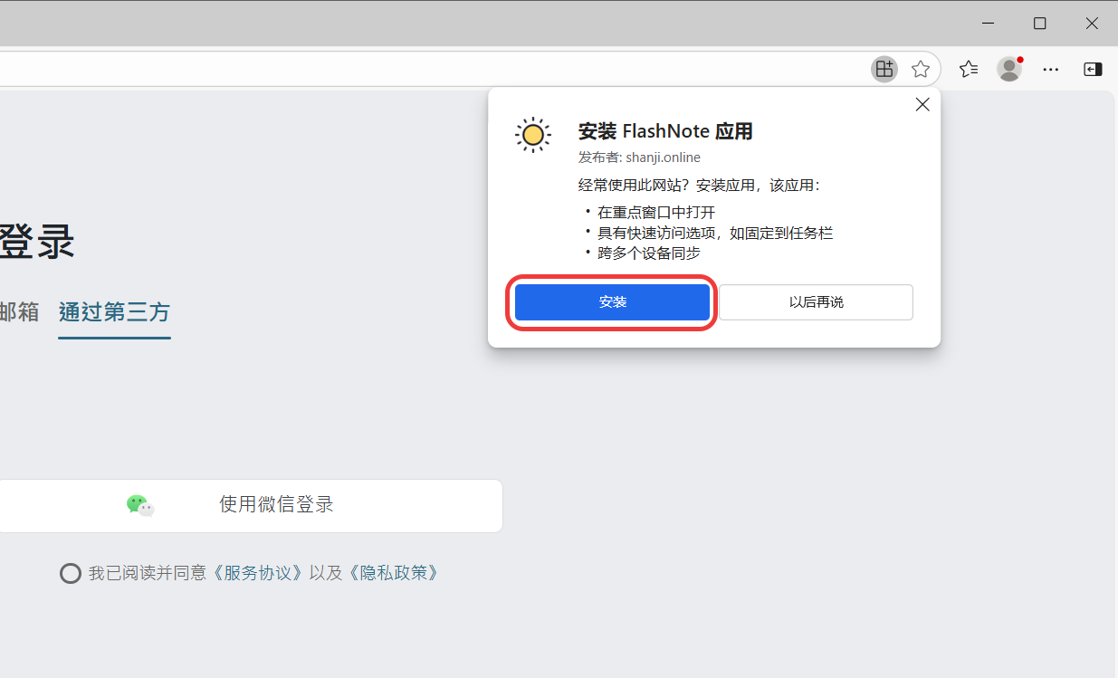 安装完毕,Edge 会弹窗让你授权允许应用: