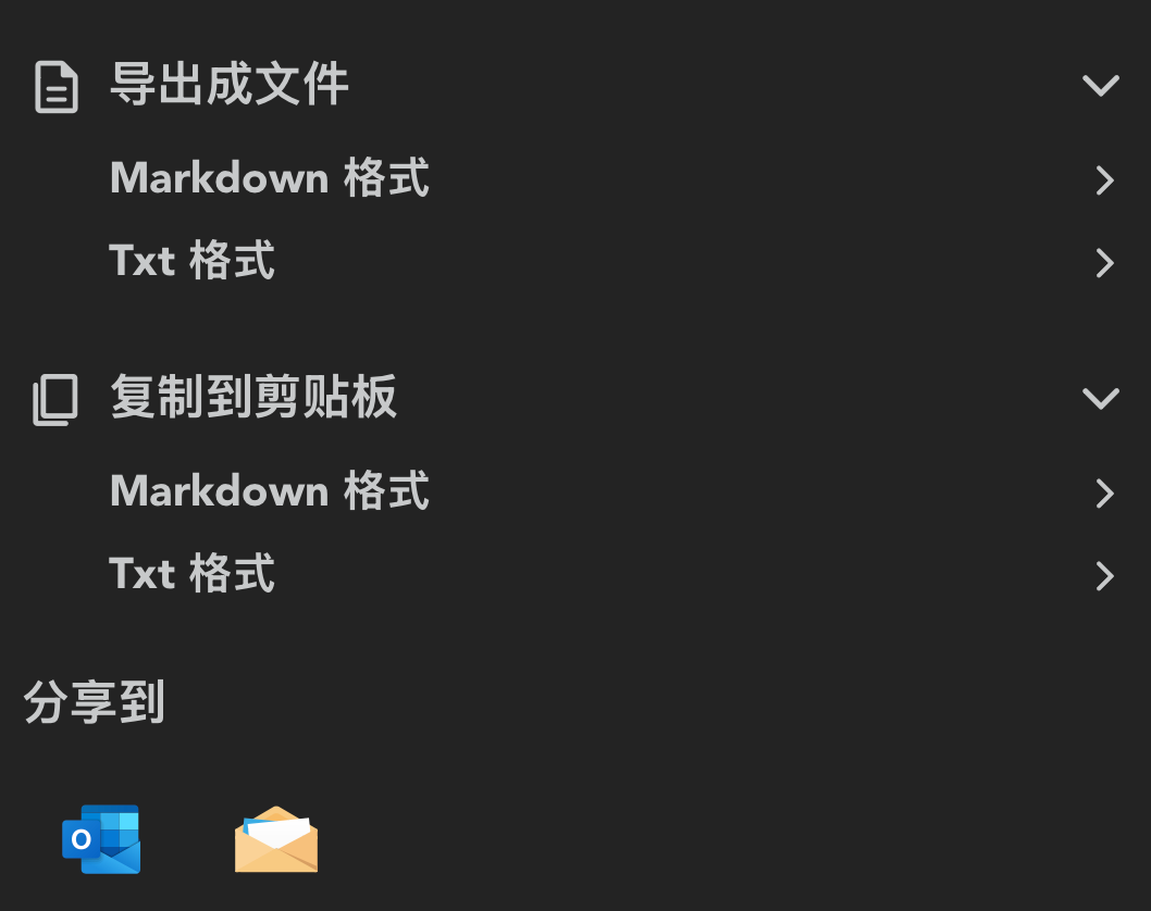 在卡片上点击箭头向右的图标,即可对单则卡片进行备份和导出。